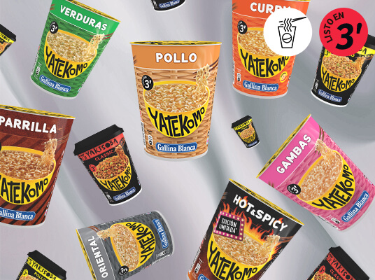 Unos Yatekomo entran en cualquier momento. Nuestras variedades están listas en tan solo 3 minutos. No pierdas tiempo en los fogones y disfruta de una sabrosa comida en un ya.